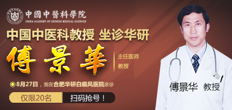 盛夏之際,正是白斑復發擴散的季節,你還在忍受你身上的白斑嗎?現在給你一個不出合肥就可以免費掛上醫生號的機會!8月27日中國中醫科學院醫生醫師、——傅景華將來合肥華研白癜風防治所附屬中西醫結合醫院 親診,不出合肥就可以得到醫生看病的機會,你還在等什么,限號預約,錯過就要再等一年了!!